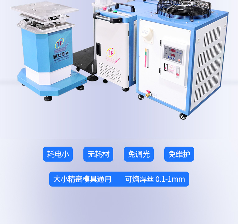 1、采用光纖激光器,反射率高,能量強(qiáng),免維護(hù),免調(diào)光,功耗少,相比傳統(tǒng) 模具焊來(lái)說(shuō),體積小,安全,穩(wěn)定性好超長(zhǎng)使用壽命。